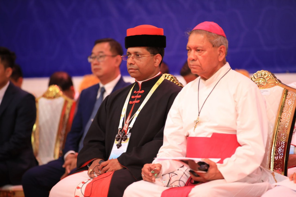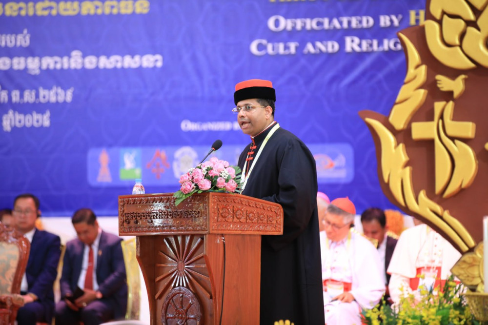 H.E. Bishop Olivier Schmitthaeusler, Apostolic Vicar of Phnom Penh, noted that the Catholic Church in Cambodia is a small but active community of around 20,000 faithful, 80 priests—including 14 Cambodian priests—and 200 religious men and women, including 15 Cambodian sisters. He emphasised the Church’s ongoing contributions to peacebuilding and development in the country.