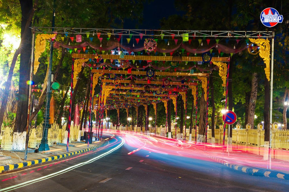 Along major roads, colourful lights shaped like flowers and the Cambodian flag have been installed and will illuminate the streets in vibrant colours at night.