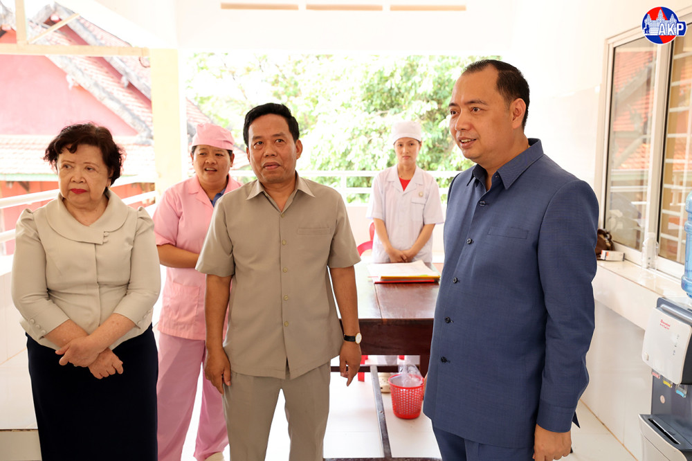 H.E. Neth Pheaktra (R, Pic. 1), Minister of Information and Head of the Royal Government Working Group for Kratie Province, this morning visits a newly-constructed building of Pong Health Centre, a donation of a charitable organisation from the State of Kuwait, in Pongro commune, Chhlong district, Kratie province.