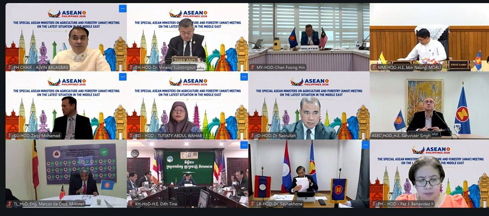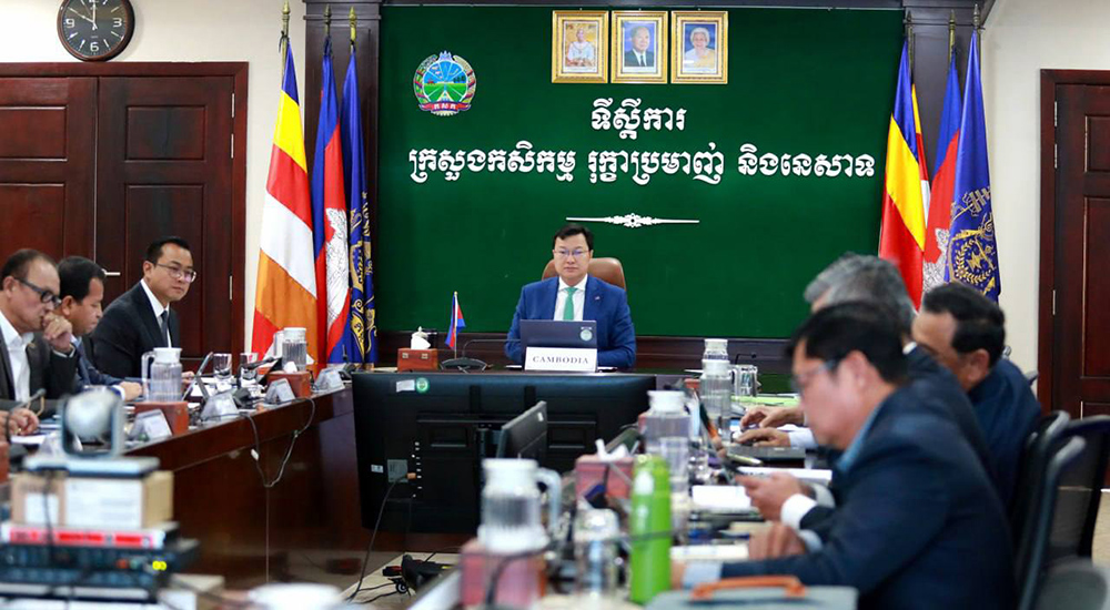 H.E. Dith Tina (C, Pic. 1), Minister of Agriculture, Forestry and Fisheries of Cambodia, attends the Special Meeting of ASEAN Ministers on Agriculture and Forestry (AMAF) on the Latest Situation in the Middle East,” organised via Videoconference on April 29 to discuss joint response measures to increase the resilience of the agricultural sector and food systems in the region.